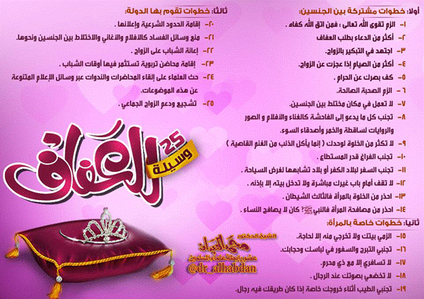 خمسة وعشرون وسيلة وطريقة تقي الإنسان بإذن الله من فتن الشهوات من : الأخ / أديب سعيد http://www.ataaalkhayer.com/up/download.php?img=5886 من أجمل ما قالت العرب قول سعيد بن العاص : [ ما شتمت رجلا مذ كنت رجلا لأن الرجال رجلين إما كريما فأنا أجله وإما لئيم فأنا أولى أن أرفع نفسي عنه! ] جاء رجل يتبخترأمام سقراط يتباهى بجمال هيئته وأناقة مظهره فقال له سقراط : [ تحدث حتى أراك ] |