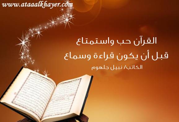 الأخ الأستاذ / نبيل جلهوم عضو جمعية الكُتَّاب ببيت عطاء الخير عضو إتحاد الكتّاب و المثقفين العرب - مصر عضو رابطة أدباء الشام – لندن عضو الإتحاد العالمى للشعراء والمبدعين العرب القرآن حب واستمتاع |