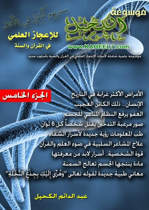 من:الأخ المهندس / عبدالدائم الكحيل موسوعة الكحيل للإعجاز العلمي 5 ننصح إخوتنا القراء بتحميل أجزاء الموسوعة العلمية هذه وتصفحها فيما بعد دون الحاجة للإنترنت وبخاصة خارج المنزل وفي أوقات الفراغ وعلى أجهزة التابلت والجوال والمحمول.... وهذا هو الجزء الخامس في موسوعة الإعجاز العلمي بالصور والتوثيق العلمي. وقد تم تخصيص هذا الجزء لعلوم الطب والنفس في القرآن والسنة. وقد تم طرح أفكار جديدة في هذا الكتاب مثل (طب المعلومات رؤية جديدة لأسرار الشفاء).. وهذا البحث يمثل وجهة نظر لعلم الطب مستنبطة من القرآن والسنة، وأن كل الحقائق العلمية اليقينية لا يمكن أن تخالف كتاب الله أو سنة نبيه عليه الصلاة والسلام. نسأل الله تعالى أن ييسر لنا نشر بقية أجزاء الموسوعة العلمية هذه، وأن يهدي بها من يشاء من عباده، وأن يتقبل من كل من ساهم في نشرها.. ونذكر بأن هذه الموسوعة مجانية تماماً لمن أحب المساهمة في النشر... لتحميل الكتاب على ملف بي دي إف (حجمه 1.7 ميغا) http://www.ataaalkhayer.com/up/download.php?img=3299 بقلم المهندس/ عبد الدائم الكحيل |