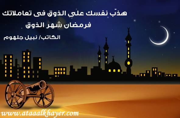رمضان شهر الذوق الأخ الأستاذ / نبيل جلهوم عضو جمعية الكُتَّاب ببيت عطاء الخير عضو إتحاد الكتّاب و المثقفين العرب - مصر عضو رابطة أدباء الشام – لندن عضو الإتحاد العالمى للشعراء والمبدعين العرب عضو إتحاد المدربين العرب عضو رابطة الأدب الإسلامى العالمية http://www.ataaalkhayer.com/up/download.php?img=6459 |