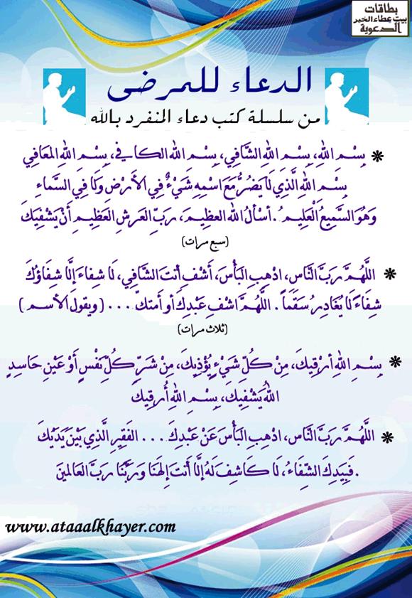 الدعاء للمرضى (02) من:الأخ الدكتور / عبدالله بن مراد العطرجي عضو جمعية الكُتَّاب ببيت عطاء الخير |