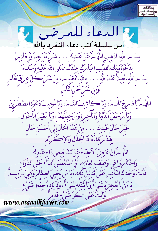 الدعاء للمرضى (10) من:الأخ الدكتور / عبدالله بن مراد العطرجي عضو جمعية الكُتَّاب ببيت عطاء الخير |