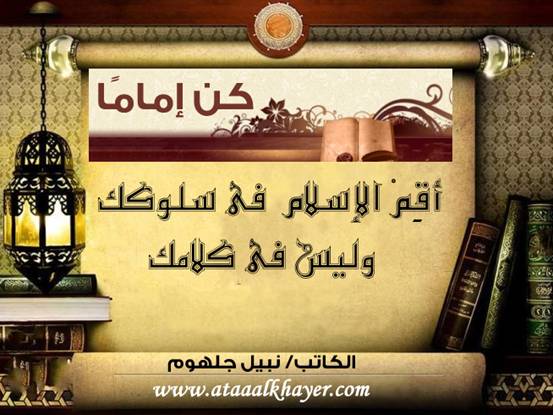 كن إماماً (20) من:الأخ الأستاذ / نبيل جلهوم عضو جمعية الكُتَّاب ببيت عطاء الخير عضو إتحاد الكتّاب و المثقفين العرب - مصر عضو رابطة أدباء الشام – لندن عضو الإتحاد العالمى للشعراء والمبدعين العرب عضو إتحاد المدربين العرب عضو رابطة الأدب الإسلامى العالمية http://www.ataaalkhayer.com/up/download.php?img=7232 |