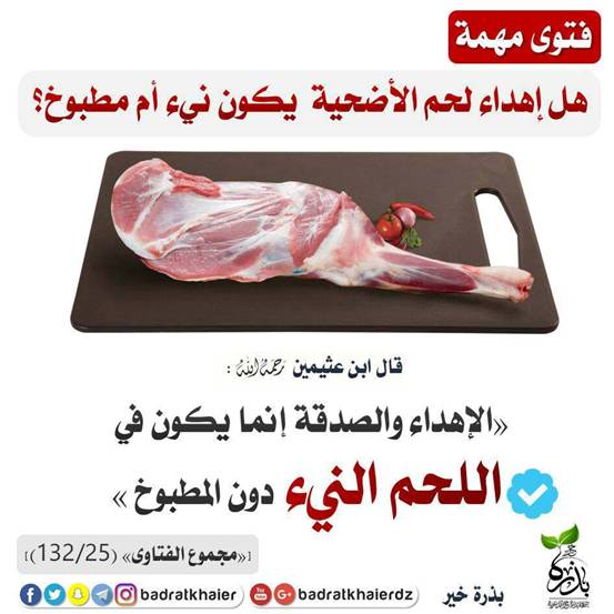 إهداء لحم الأضحية نئ أم مطبوخ؟