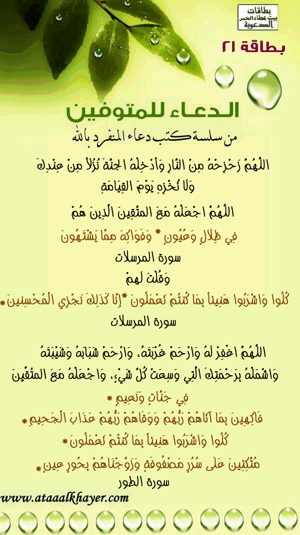 الدعاء للمتوفين (21) من:الأخ الدكتور / عبدالله بن مراد العطرجي عضو جمعية الكُتَّاب ببيت عطاء الخير |