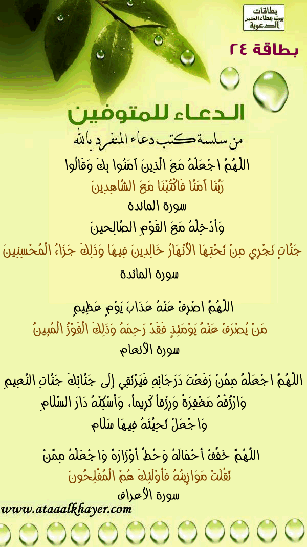 الدعاء للمتوفين (24) من:الأخ الدكتور / عبدالله بن مراد العطرجي عضو جمعية الكُتَّاب ببيت عطاء الخير |