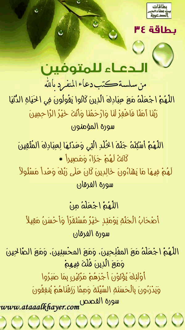 الدعاء للمتوفين (34) من:الأخ الدكتور / عبدالله بن مراد العطرجي عضو جمعية الكُتَّاب ببيت عطاء الخير |