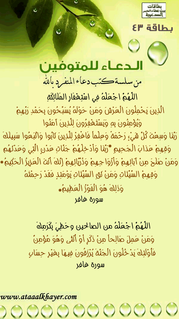 الدعاء للمتوفين (43) من:الأخ الدكتور / عبدالله بن مراد العطرجي عضو جمعية الكُتَّاب ببيت عطاء الخير ش |