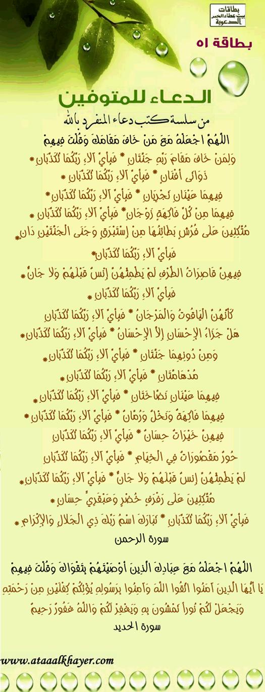 الدعاء للمتوفين (51) من:الأخ الدكتور / عبدالله بن مراد العطرجي عضو جمعية الكُتَّاب ببيت عطاء الخير |