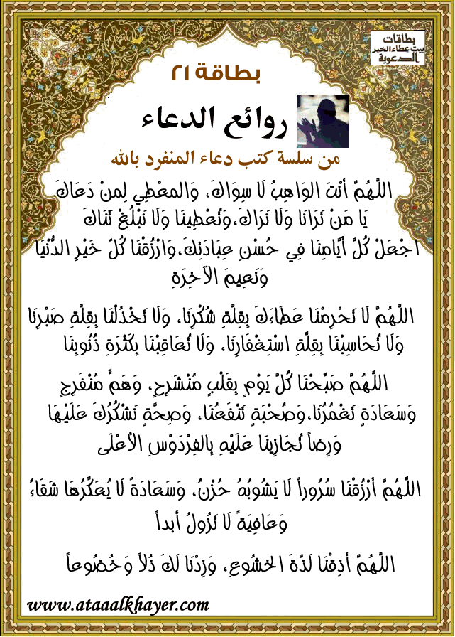 روائع الدعاء (21) من:الأخ الدكتور / عبدالله بن مراد العطرجي عضو جمعية الكُتَّاب ببيت عطاء الخير |