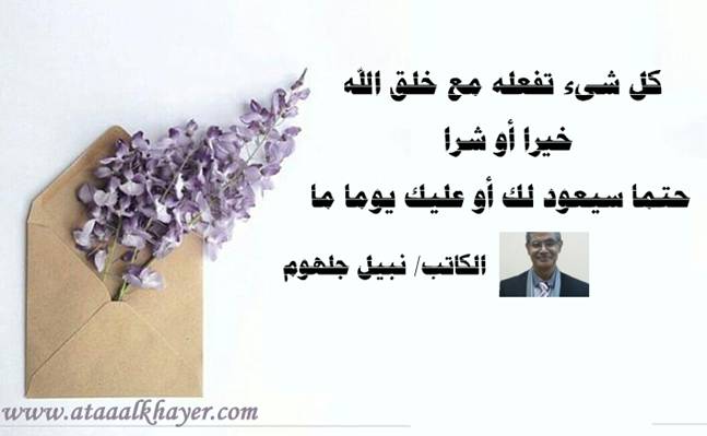 حتماً سيعود إليك من:الأخ الأستاذ / نبيل جلهوم عضو جمعية الكُتَّاب ببيت عطاء الخير عضو إتحاد الكتّاب و المثقفين العرب - مصر عضو رابطة أدباء الشام – لندنش عضو الإتحاد العالمى للشعراء والمبدعين العرب عضو إتحاد المدربين العرب عضو رابطة الأدب الإسلامى العالمية http://www.ataaalkhayer.com/up/download.php?img=8716 |