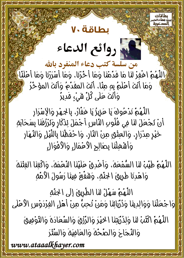 روائع الدعاء (70) من:الأخ الدكتور / عبدالله بن مراد العطرجي عضو جمعية الكُتَّاب ببيت عطاء الخير |