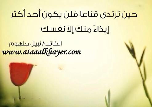 حين ترتدي قناعا من:الأخ الأستاذ / نبيل جلهوم عضو جمعية الكُتَّاب ببيت عطاء الخير عضو إتحاد الكتّاب و المثقفين العرب - مصر عضو رابطة أدباء الشام – لندنش عضو الإتحاد العالمى للشعراء والمبدعين العرب عضو إتحاد المدربين العرب عضو رابطة الأدب الإسلامى العالمية http://www.ataaalkhayer.com/up/download.php?img=9113 |