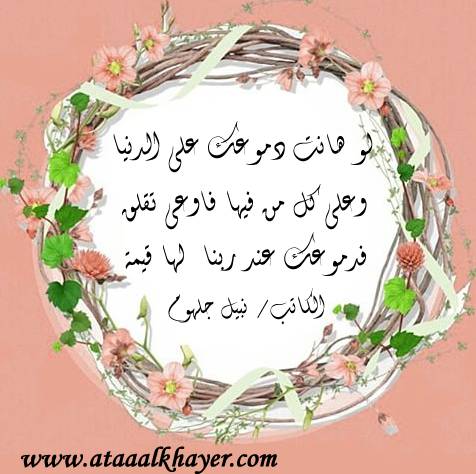 دموعك لها قيمة من:الأخ الأستاذ / نبيل جلهوم عضو جمعية الكُتَّاب ببيت عطاء الخير عضو إتحاد الكتّاب و المثقفين العرب - مصر عضو رابطة أدباء الشام – لندن عضو الإتحاد العالمى للشعراء والمبدعين العرب عضو إتحاد المدربين العرب عضو رابطة الأدب الإسلامى العالمية http://www.ataaalkhayer.com/up/download.php?img=9204 |