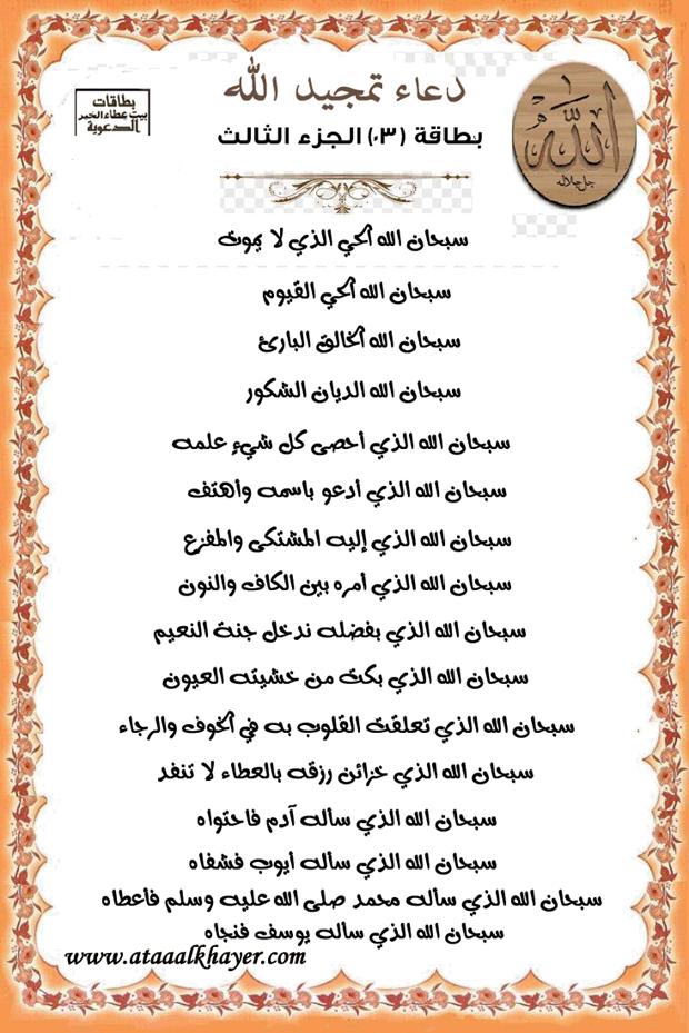 دعاء تمجيد الله بطاقة (03) الجزء الثالث