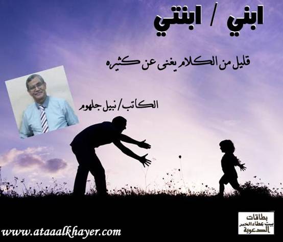 ابني / ابنتي (15) من:الأخ الأستاذ / نبيل جلهوم عضو جمعية الكُتَّاب ببيت عطاء الخير عضو إتحاد الكتّاب و المثقفين العرب - مصر عضو رابطة أدباء الشام – لندن عضو الإتحاد العالمى للشعراء والمبدعين العرب عضو إتحاد المدربين العرب عضو رابطة الأدب الإسلامى العالمية http://www.ataaalkhayer.com/up/download.php?img=9806 |