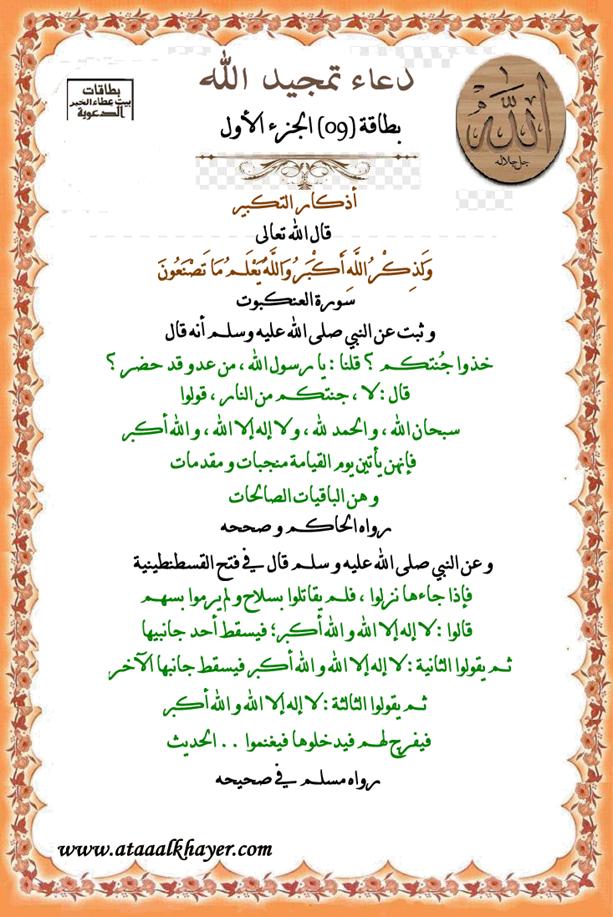 دعاء تمجيد الله (09) الجزء الأول http://www.ataaalkhayer.com/up/download.php?img=9641 من:الأخ الدكتور / عبدالله بن مراد العطرجي عضو جمعية الكُتَّاب ببيت عطاء الخير |