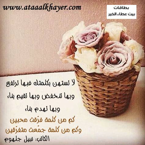 بها تقيم البناء وتهدمه من:الأخ الأستاذ / نبيل جلهوم عضو جمعية الكُتَّاب ببيت عطاء الخير عضو إتحاد الكتّاب و المثقفين العرب - مصر عضو رابطة أدباء الشام – لندن عضو الإتحاد العالمى للشعراء والمبدعين العرب عضو إتحاد المدربين العرب عضو رابطة الأدب الإسلامى العالمية http://www.ataaalkhayer.com/up/download.php?img=10140 |