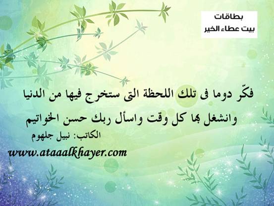 الخروج الأخير من:الأخ الأستاذ / نبيل جلهوم عضو جمعية الكُتَّاب ببيت عطاء الخير عضو إتحاد الكتّاب و المثقفين العرب - مصر عضو رابطة أدباء الشام – لندن عضو الإتحاد العالمى للشعراء والمبدعين العرب عضو إتحاد المدربين العرب عضو رابطة الأدب الإسلامى العالمية http://www.ataaalkhayer.com/up/download.php?img=10144 |