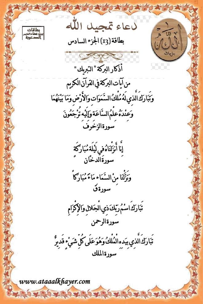 دعاء تمجيد الله (13) الجزء السادس http://www.ataaalkhayer.com/up/download.php?img=9641 من:الأخ الدكتور / عبدالله بن مراد العطرجي عضو جمعية الكُتَّاب ببيت عطاء الخير |