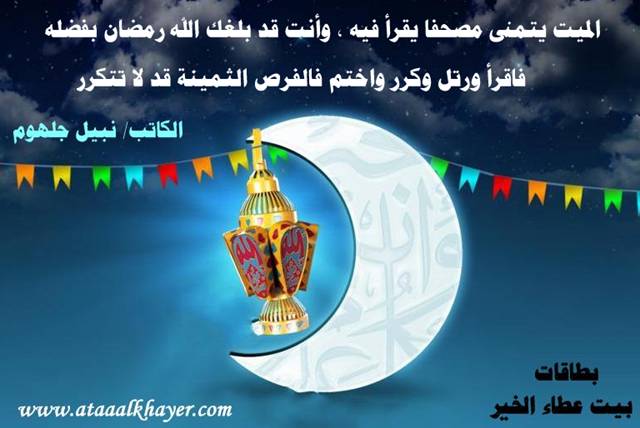 اقرأ ورتل وكرر واختم من:الأخ الأستاذ / نبيل جلهوم عضو جمعية الكُتَّاب ببيت عطاء الخير عضو إتحاد الكتّاب و المثقفين العرب - مصر عضو رابطة أدباء الشام – لندنش عضو الإتحاد العالمى للشعراء والمبدعين العرب عضو إتحاد المدربين العرب عضو رابطة الأدب الإسلامى العالمية http://www.ataaalkhayer.com/up/download.php?img=10342 |
