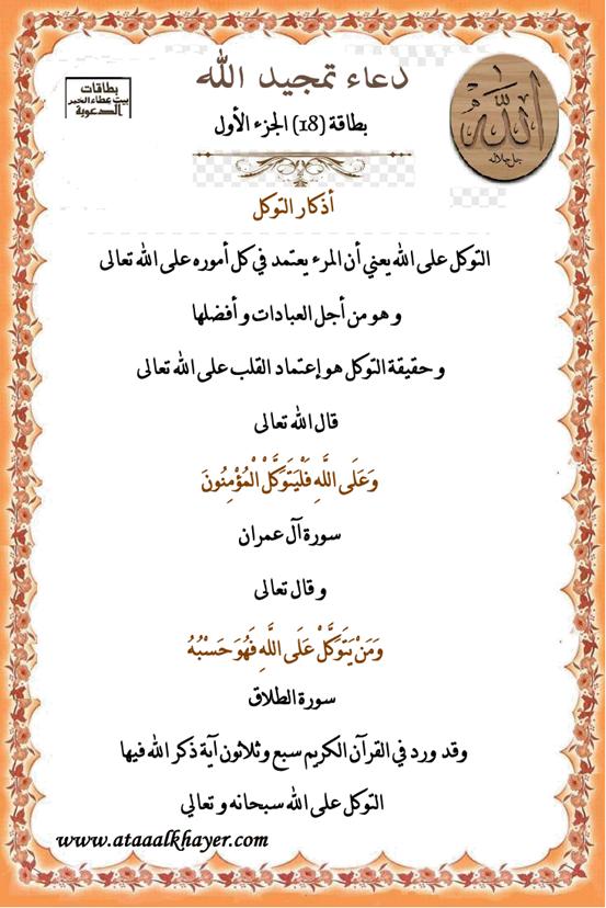 دعاء تمجيد الله بطاقة (18) الجزء الأول http://www.ataaalkhayer.com/up/download.php?img=9641 من:الأخ الدكتور / عبدالله بن مراد العطرجي عضو جمعية الكُتَّاب ببيت عطاء الخير |