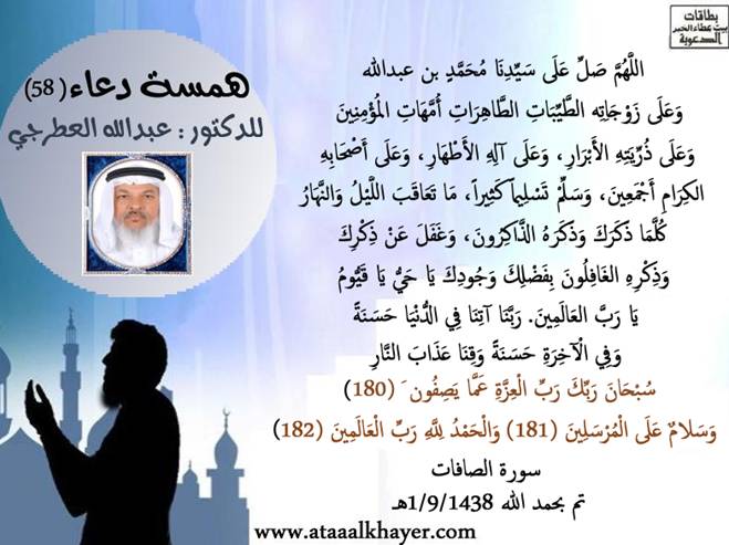 همسة دعاء (58) (الأخيرة) http://www.ataaalkhayer.com/up/download.php?img=9641 من:الأخ الدكتور / عبدالله بن مراد العطرجي عضو جمعية الكُتَّاب ببيت عطاء الخير |