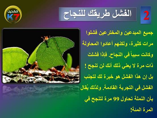 من:الأخ المهندس / عبدالدائم الكحيل http://www.ataaalkhayer.com/up/download.php?img=9641 نصائح للنجاح (02) هذه نصائحي لكل من يطمح للنجاح.. بعد التوكل على الله تعالى.. فالنجاح هو عملية فيزيائية طبيعية يمكن للإنسان أن يحققها إذا اتبع قواعد محددة.. مع اليقين بأن النجاح بيد الله وحده وليس بيدك! بقلم المهندس/ عبد الدائم الكحيل |