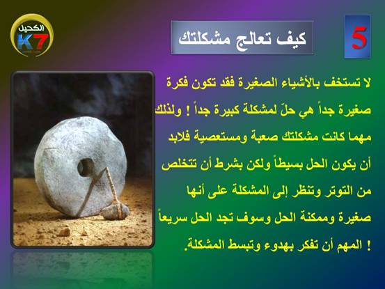 من:الأخ المهندس / عبدالدائم الكحيل http://www.ataaalkhayer.com/up/download.php?img=9641 نصائح للنجاح (05) هذه نصائحي لكل من يطمح للنجاح.. بعد التوكل على الله تعالى.. فالنجاح هو عملية فيزيائية طبيعية يمكن للإنسان أن يحققها إذا اتبع قواعد محددة.. مع اليقين بأن النجاح بيد الله وحده وليس بيدك! بقلم المهندس/ عبد الدائم الكحيل |