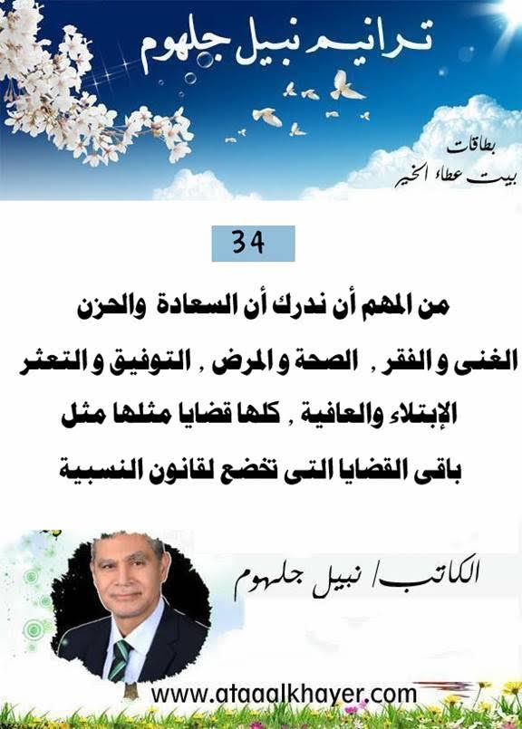ترانيم نبيل جلهوم (34) من:الأخ الأستاذ / نبيل جلهوم عضو جمعية الكُتَّاب ببيت عطاء الخير عضو إتحاد الكتّاب و المثقفين العرب - مصر عضو رابطة أدباء الشام – لندن عضو الإتحاد العالمى للشعراء والمبدعين العرب عضو إتحاد المدربين العرب عضو رابطة الأدب الإسلامى العالمية http://www.ataaalkhayer.com/up/download.php?img=14837 |
