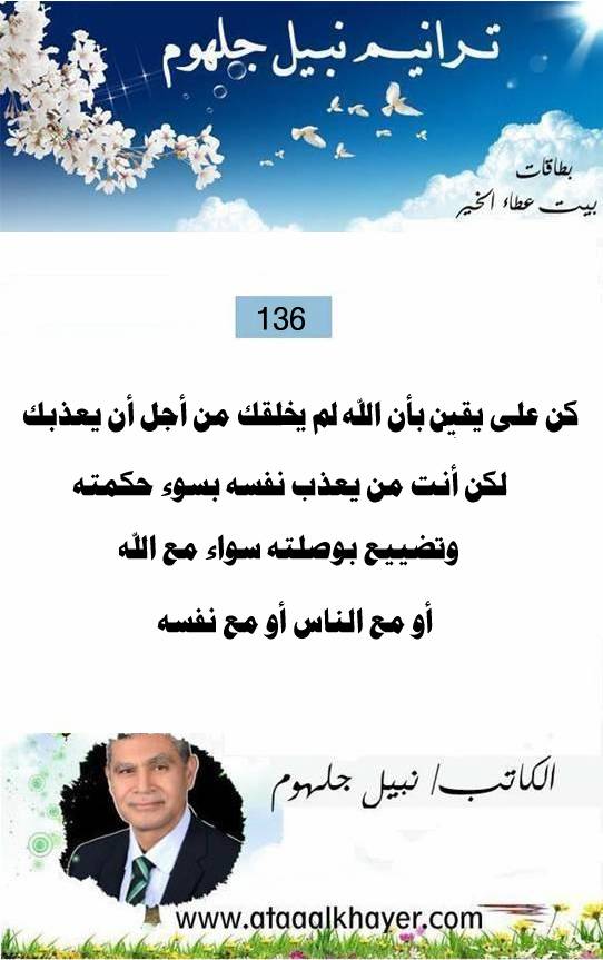 ترانيم نبيل جلهوم (136) من:الأخ الأستاذ / نبيل جلهوم عضو جمعية الكُتَّاب ببيت عطاء الخير عضو إتحاد الكتّاب و المثقفين العرب - مصر عضو رابطة أدباء الشام – لندن عضو الإتحاد العالمى للشعراء والمبدعين العرب عضو إتحاد المدربين العرب عضو رابطة الأدب الإسلامى العالمية http://www.ataaalkhayer.com/up/download.php?img=15545 |