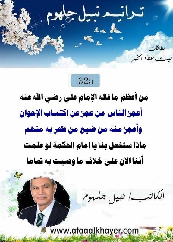 ترانيم نبيل جلهوم(325) من:الأخ الأستاذ / نبيل جلهوم عضو جمعية الكُتَّاب ببيت عطاء الخير عضو إتحاد الكتّاب و المثقفين العرب - مصر عضو رابطة أدباء الشام – لندن عضو الإتحاد العالمى للشعراء والمبدعين العرب عضو إتحاد المدربين العرب عضو رابطة الأدب الإسلامى العالمية http://www.ataaalkhayer.com/up/download.php?img=16303 |