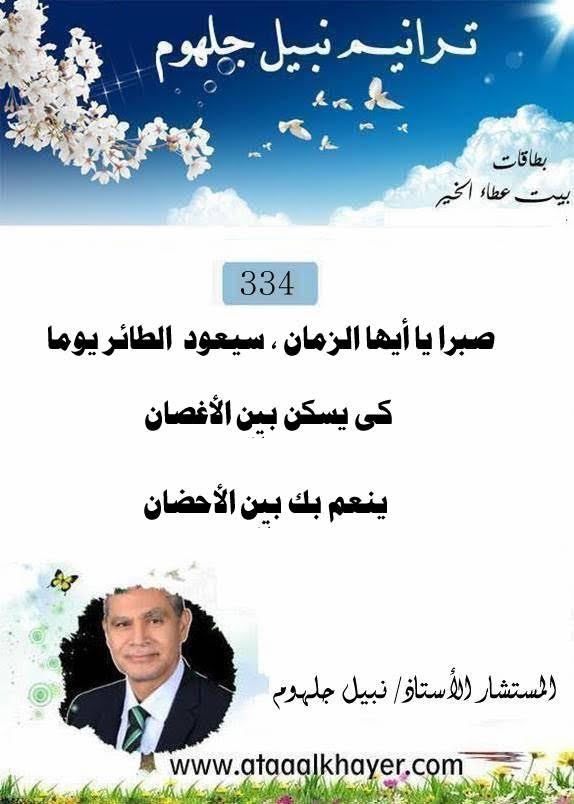 ترانيم نبيل جلهوم(334) من:الأخ الأستاذ / نبيل جلهوم عضو جمعية الكُتَّاب ببيت عطاء الخير عضو إتحاد الكتّاب و المثقفين العرب - مصر عضو رابطة أدباء الشام – لندن عضو الإتحاد العالمى للشعراء والمبدعين العرب عضو إتحاد المدربين العرب عضو رابطة الأدب الإسلامى العالمية http://www.ataaalkhayer.com/up/download.php?img=16347 |