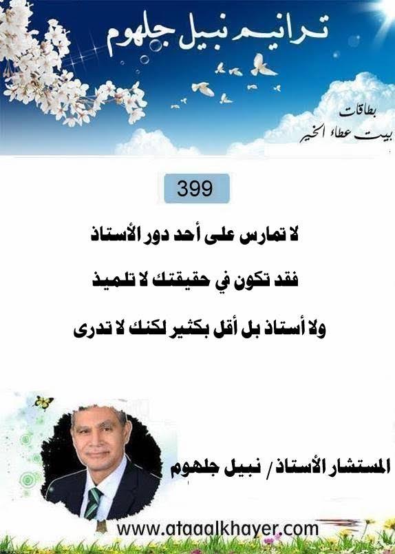 ترانيم نبيل جلهوم(399) من:الأخ الأستاذ / نبيل جلهوم عضو جمعية الكُتَّاب ببيت عطاء الخير عضو إتحاد الكتّاب و المثقفين العرب - مصر عضو رابطة أدباء الشام – لندن عضو الإتحاد العالمى للشعراء والمبدعين العرب عضو إتحاد المدربين العرب عضو رابطة الأدب الإسلامى العالمية http://www.ataaalkhayer.com/up/download.php?img=16638 |