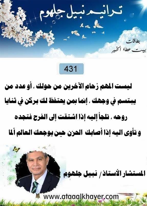 ترانيم نبيل جلهوم(431) من:الأخ الأستاذ / نبيل جلهوم عضو جمعية الكُتَّاب ببيت عطاء الخير عضو إتحاد الكتّاب و المثقفين العرب - مصر عضو رابطة أدباء الشام – لندن عضو الإتحاد العالمى للشعراء والمبدعين العرب عضو إتحاد المدربين العرب عضو رابطة الأدب الإسلامى العالمية http://www.ataaalkhayer.com/up/download.php?img=16728 |