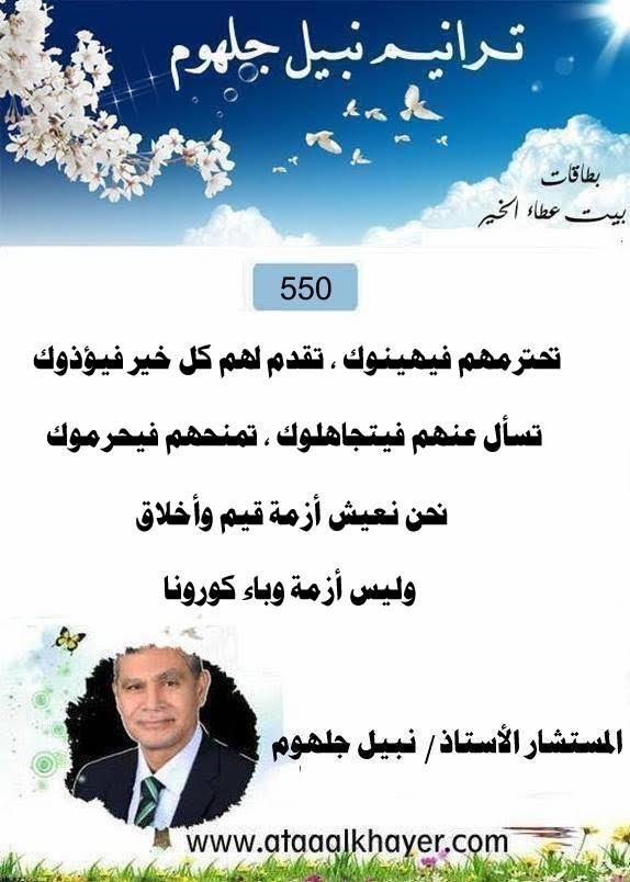 ترانيم نبيل جلهوم(550) من:الأخ الأستاذ / نبيل جلهوم عضو جمعية الكُتَّاب ببيت عطاء الخير عضو إتحاد الكتّاب و المثقفين العرب - مصر عضو رابطة أدباء الشام – لندن عضو الإتحاد العالمى للشعراء والمبدعين العرب عضو إتحاد المدربين العرب عضو رابطة الأدب الإسلامى العالمية http://www.ataaalkhayer.com/up/download.php?img=17188 http://www.ataaalkhayer.com/up/download.php?img=17189 |
