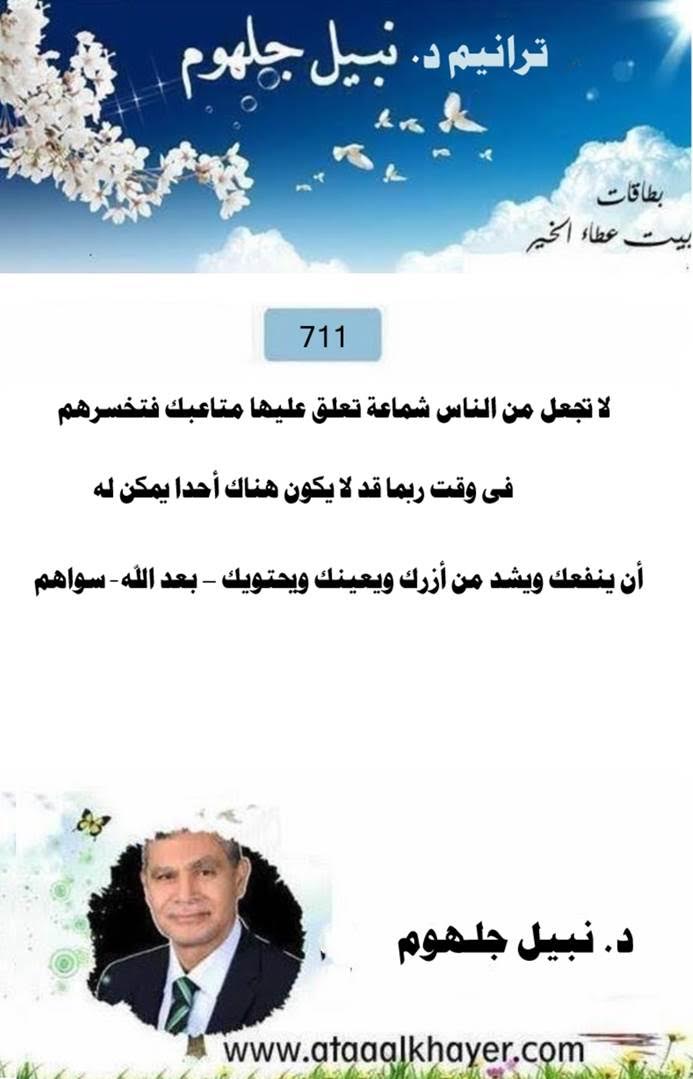 ترانيم نبيل جلهوم(711) من:الأخ الأستاذ / نبيل جلهوم عضو جمعية الكُتَّاب ببيت عطاء الخير عضو إتحاد الكتّاب و المثقفين العرب - مصر عضو رابطة أدباء الشام – لندن عضو الإتحاد العالمى للشعراء والمبدعين العرب عضو إتحاد المدربين العرب عضو رابطة الأدب الإسلامى العالمية http://www.ataaalkhayer.com/up/download.php?img=17773 |
