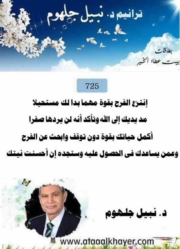ترانيم نبيل جلهوم(725) من:الأخ الأستاذ / نبيل جلهوم عضو جمعية الكُتَّاب ببيت عطاء الخير عضو إتحاد الكتّاب و المثقفين العرب - مصر عضو رابطة أدباء الشام – لندن عضو الإتحاد العالمى للشعراء والمبدعين العرب عضو إتحاد المدربين العرب عضو رابطة الأدب الإسلامى العالمية http://www.ataaalkhayer.com/up/download.php?img=17813 |