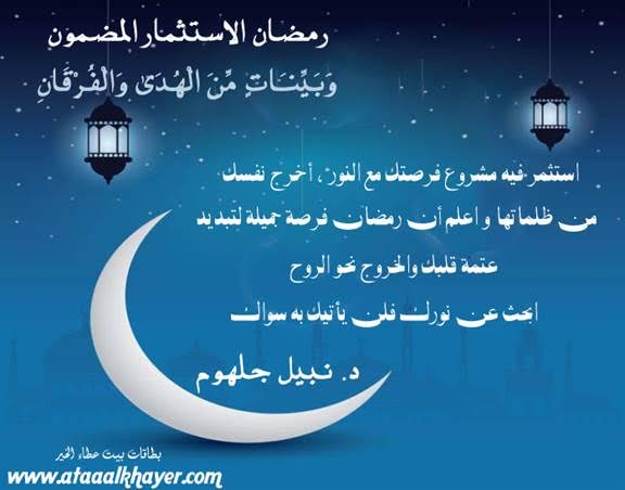 رمضان الاستثمار المضمون (25) {وَبَيِّنَاتٍ مِّنَ الْهُدَىظ° وَالْفُرْقَانِ} من:الأخ الأستاذ / نبيل جلهوم عضو جمعية الكُتَّاب ببيت عطاء الخير عضو إتحاد الكتّاب و المثقفين العرب - مصر عضو رابطة أدباء الشام – لندن عضو الإتحاد العالمى للشعراء والمبدعين العرب عضو إتحاد المدربين العرب عضو رابطة الأدب الإسلامى العالمية http://www.ataaalkhayer.com/up/download.php?img=18105 |