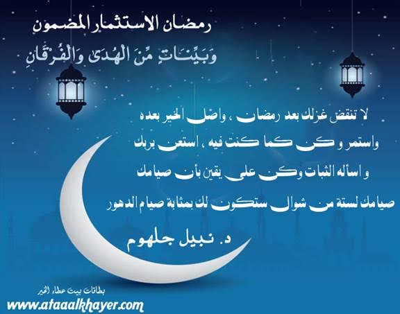 رمضان الاستثمار المضمون (30) {وَبَيِّنَاتٍ مِّنَ الْهُدَىظ° وَالْفُرْقَانِ} من:الأخ الأستاذ / نبيل جلهوم عضو جمعية الكُتَّاب ببيت عطاء الخير عضو إتحاد الكتّاب و المثقفين العرب - مصر عضو رابطة أدباء الشام – لندن عضو الإتحاد العالمى للشعراء والمبدعين العرب عضو إتحاد المدربين العرب عضو رابطة الأدب الإسلامى العالمية http://www.ataaalkhayer.com/up/download.php?img=18120 |