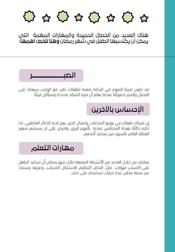 من الأبنة/ أسماء المرسى خصال يتعلمها الطفل في شهر رمضان (01) http://www.ataaalkhayer.com/up/download.php?img=19468 |