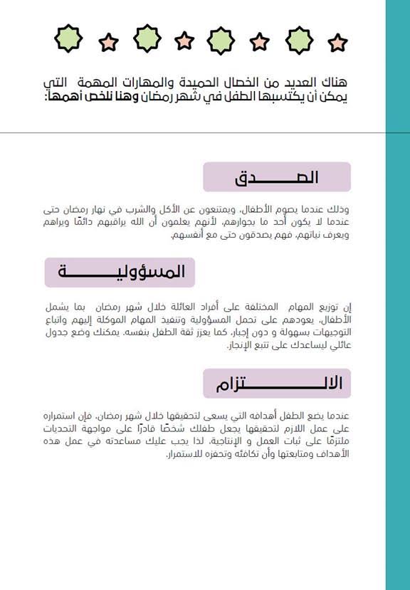 من الأبنة/ أسماء المرسى خصال يتعلمها الطفل في شهر رمضان (02 - 02) http://www.ataaalkhayer.com/up/download.php?img=19470 |