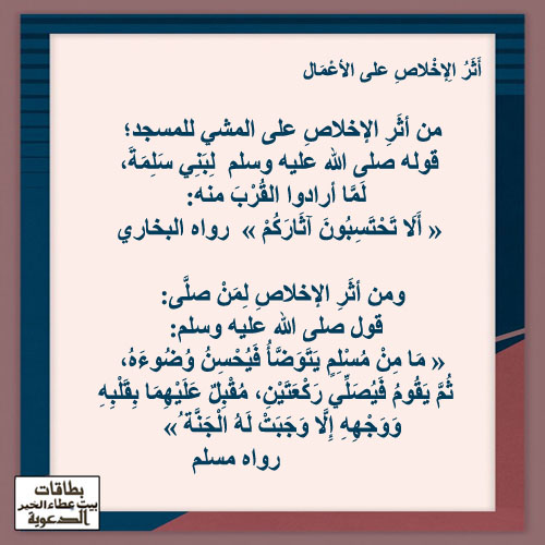 أَثَرُ الإِخْلاصِ على الأعْمَال 01