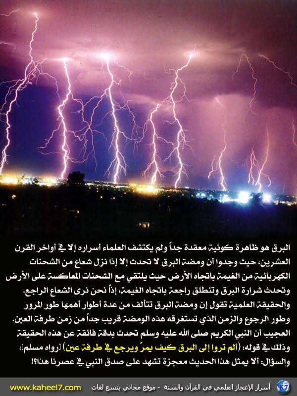 من:الأخ المهندس / عبدالدائم الكحيل http://www.ataaalkhayer.com/up/download.php?img=9641 صورة وحديث : البرق البرق هو ظاهرة كونية معقدة جداً ولم يكتشف العلماء أسراره إلا في أواخر القرن العشرين.... https://www.ataaalkhayer.com/up/download.php?img=20521 ــــــــ بقلم المهندس /عبد الدائم الكحيل |